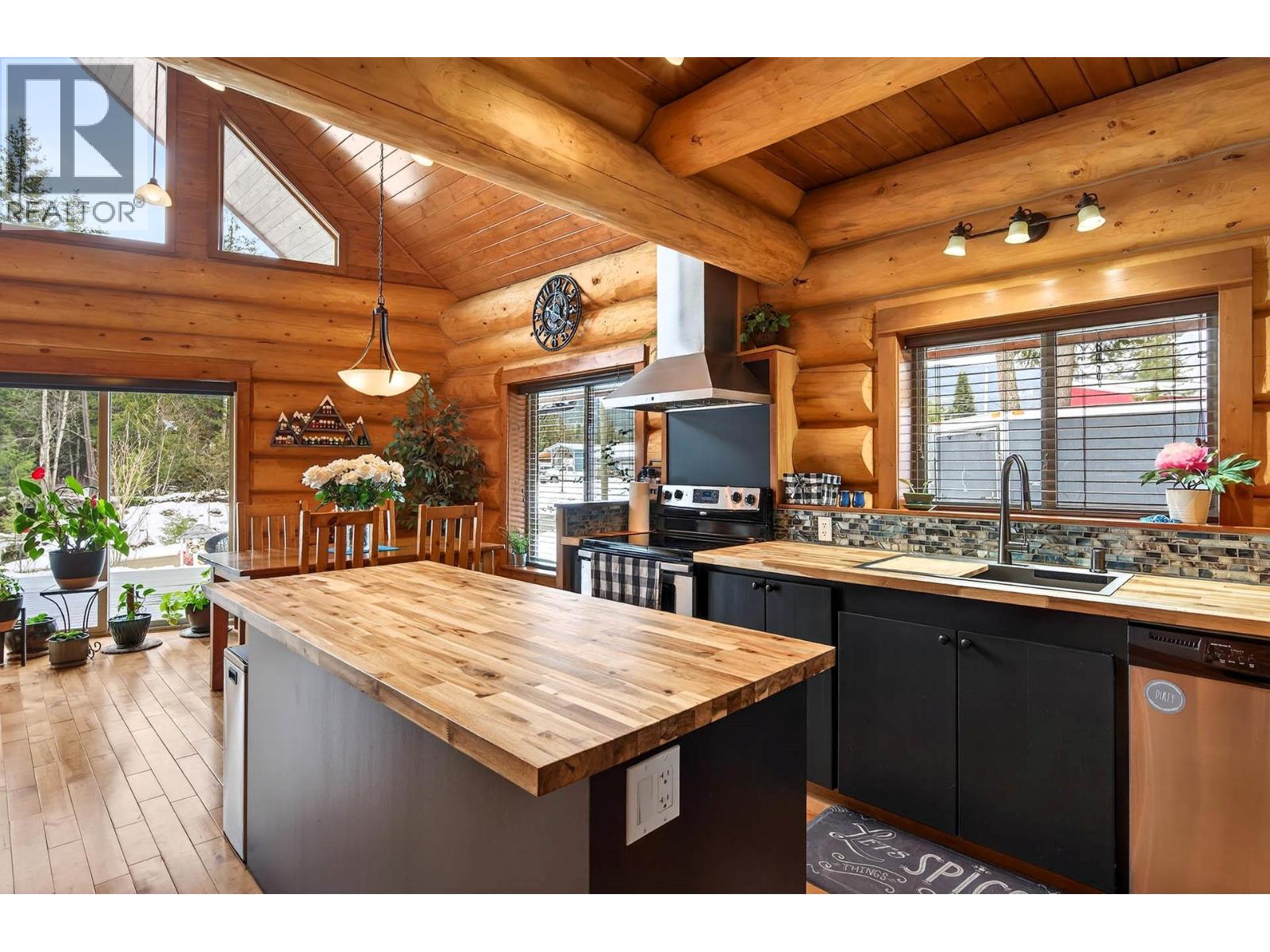 Welcome to your perfect log chalet. This charming 3-bedroom, 3-bathroom log home offers warmth, character, and the lifestyle you’ve been dreaming of. Step inside and be greeted by soaring vaulted ceilings and a stunning wood-burning fireplace that anchors the living room—creating the perfect cozy gathering space. Large windows invite in sensational early morning sun, filling the home with natural light and showcasing the beautiful surroundings. The main floor is designed for convenient living, featuring the kitchen, living room, a spare bedroom, and laundry all on one level. Upstairs, the loft area offers a fantastic office space—imagine working from home with that inspiring view as your backdrop. The spacious primary bedroom includes a walk-in closet and private ensuite, creating a comfortable and relaxing retreat. Downstairs, the basement offers a generous rec room, an additional bedroom/ storage room, plus a dedicated utility and storage area—plenty of room for family, guests, or hobbies. The garage is spacious, 24x24 and ready for all your toys, tools, and outdoor gear. You could have your own back yard chickens too if you'd like. Chicken coop is built and currently producing. Situated on two lots totaling 1.45 acres, you’ll enjoy added privacy and space to truly make it your own. This is the log home lifestyle you’ve been waiting for. Call today for more information or to book your private showing. (id:4069)